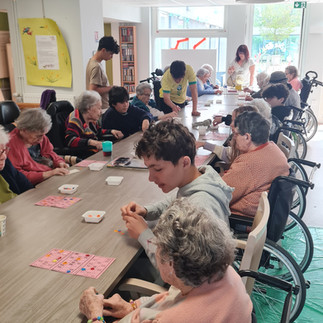 En parallèle, les jeunes ont contribués à différents temps d'animations (Karaoké, atelier bien être, cuisine, basket, soirée), apportant leur bonne humeur et leur dynamisme au sein de l'établissement. Des temps hors de l'EHPAD ont été appréciés par nos jeunes afin de découvrir le Marché de Bernay suivi d'un Laser Game, cinéma et petit restaurant.